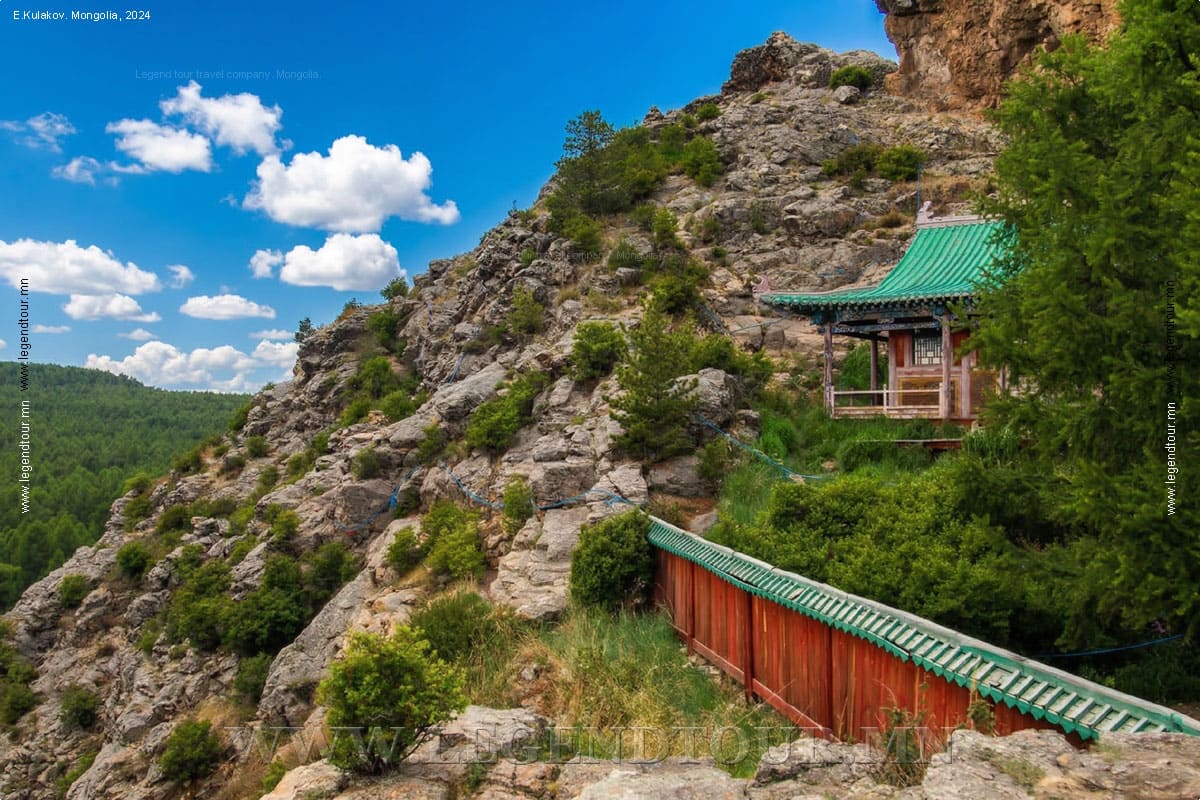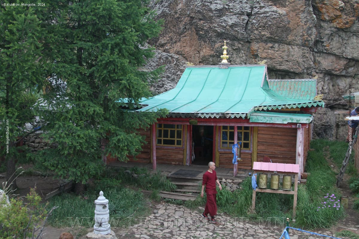 На западе от монастыря в скалах имеется маленькая пещера, в которой Занабазар медитировал. Выше находится вторая скальная платформа с родником.